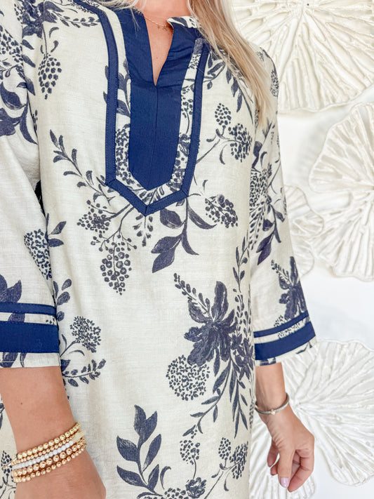 Navy/Cream Floral Shift Dress