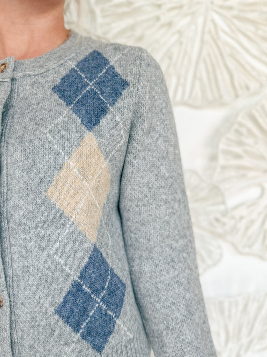 Grey Argyle Button Sweater