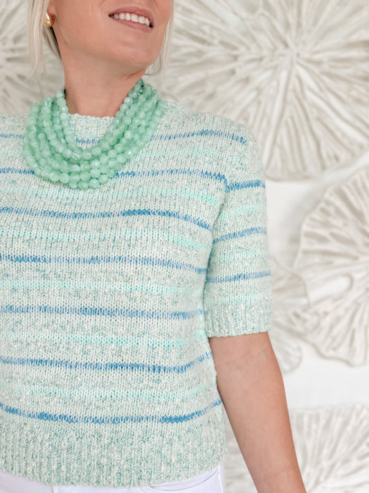 Blue Knit Short Sleeve Sweater
