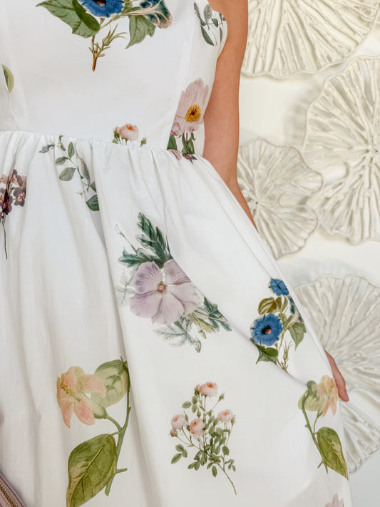 White Spring Floral Scalloped Midi