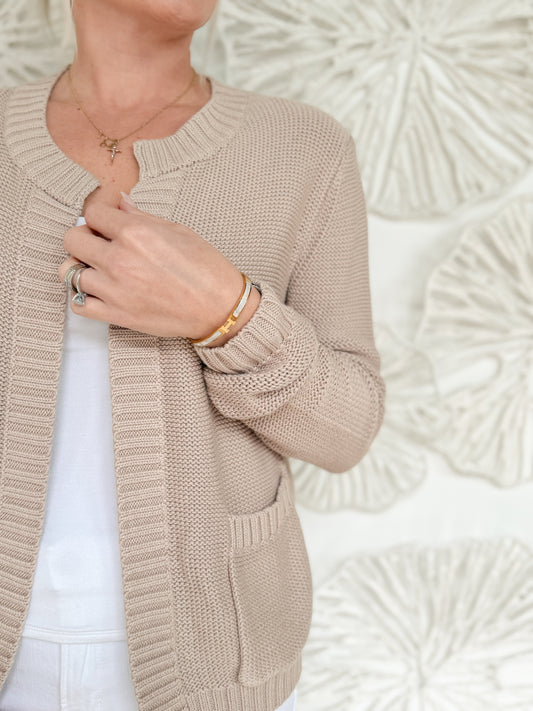 Natural Cardigan with Ribbed Detail