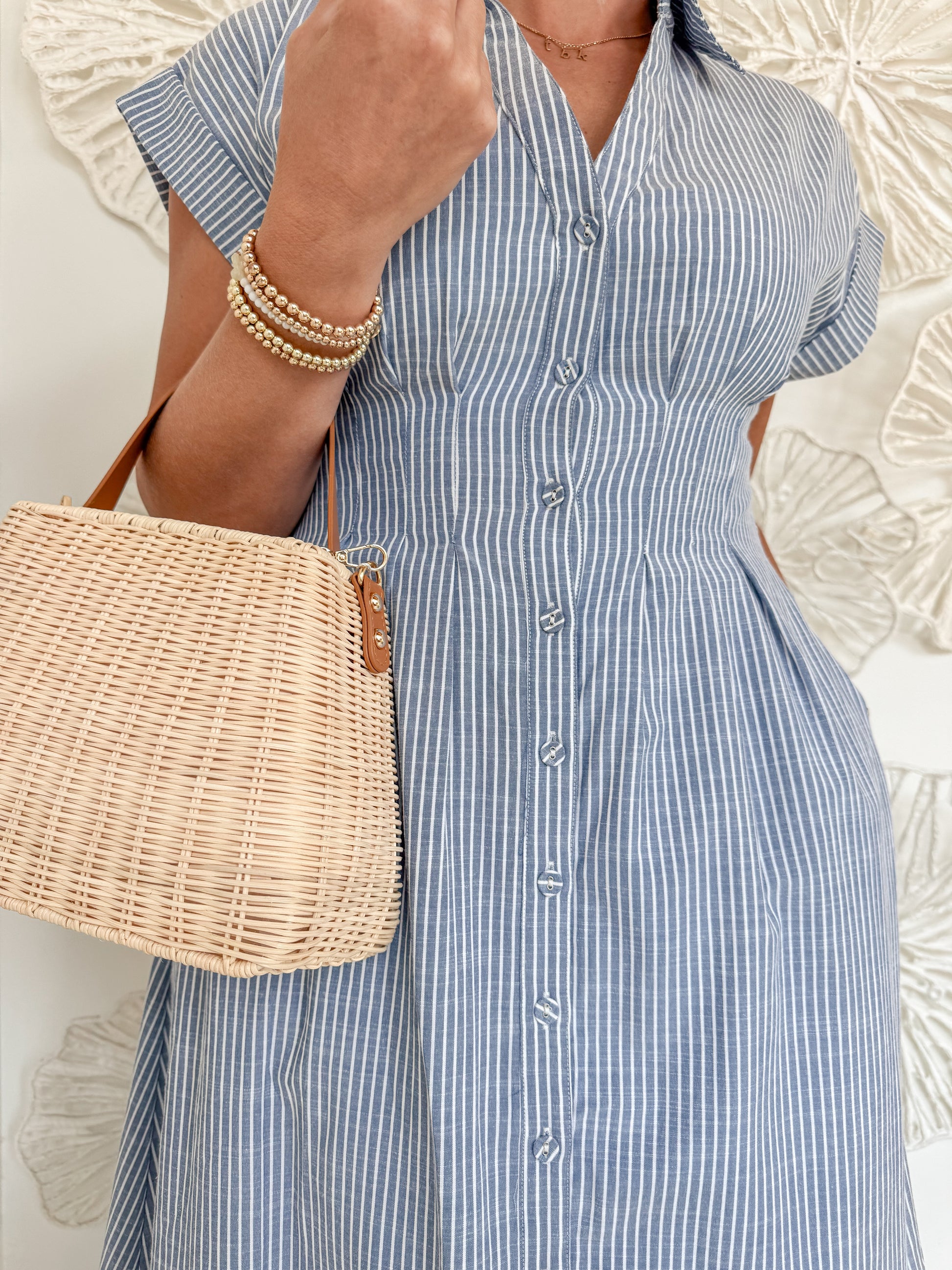 Blue Striped Pinch Pleat Maxi