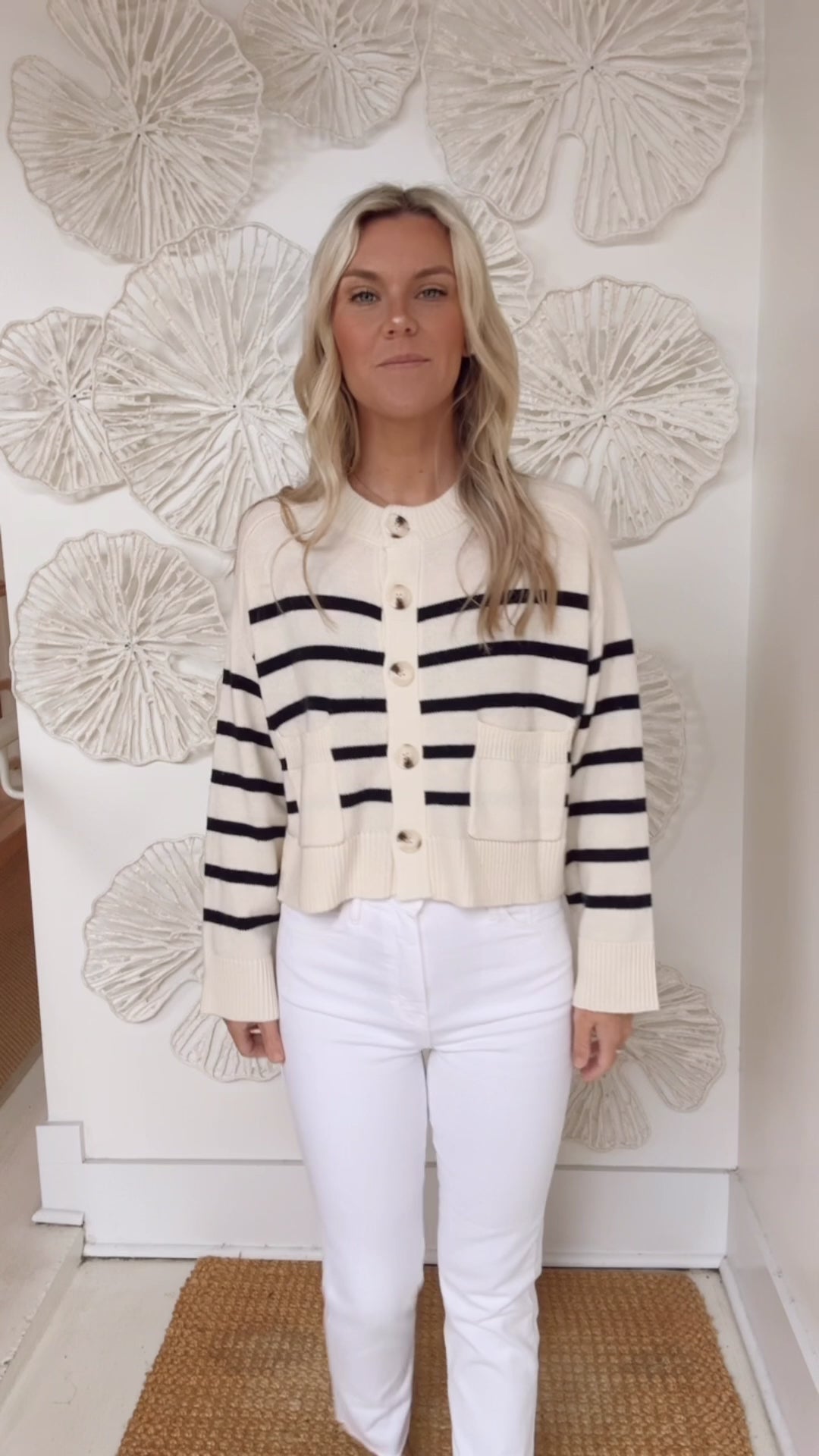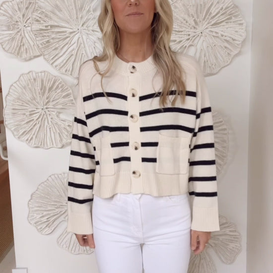 White/Navy Front Pocket Cardigan