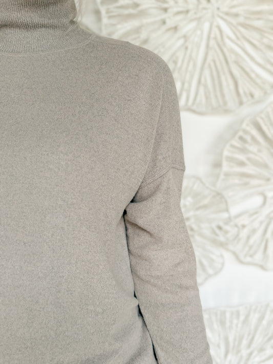 Heathered Beige Mock Neck Tan